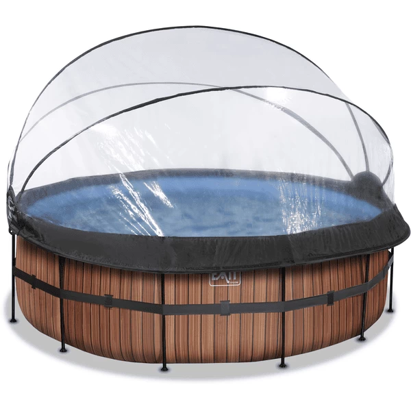 Der EXIT Wood Pool ø427 x 122 cm ist ein runder Rahmenpool mit Abdeckung. Der