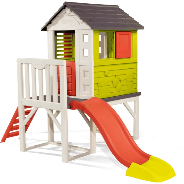 verfügt über eine Veranda, eine Kletterleiter und eine tolle Rutschbahn, mit